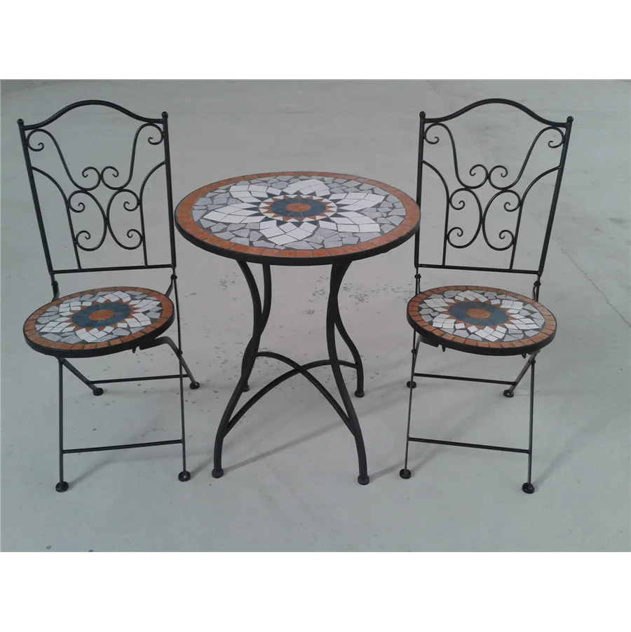 Backyard Classics 3 Piece Mosaic Patio Set With Mesh Chairs And