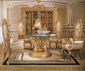 Oe Fashion Royal Luxury Round Wooden Dining Table With Glass Top