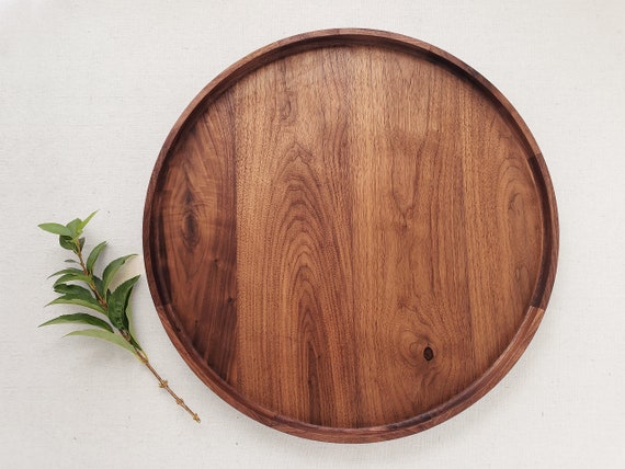 Round Wood Tray Black Walnut Circle Valet Coffee Table Etsy