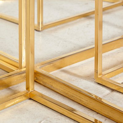 Golden Framed Round Glass Coffee Table And Nesting Tables Set