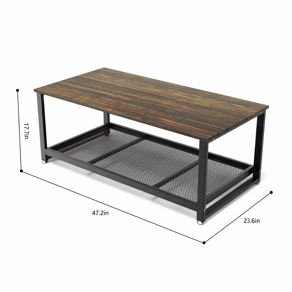 Dewel Coffee Table With Storage Shelf Industrial Modern Rustic 47