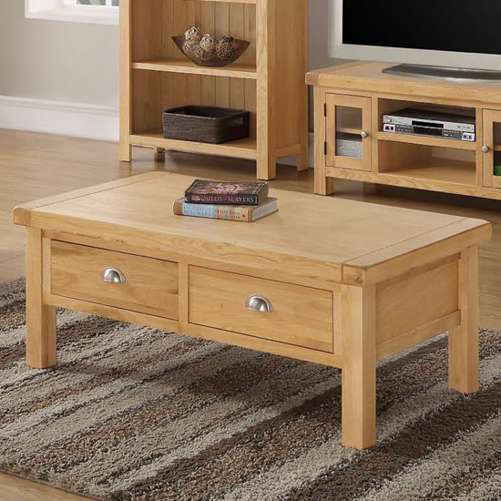 Heaton Large Coffee Table In Rustic Light Oak With 2 Drawers