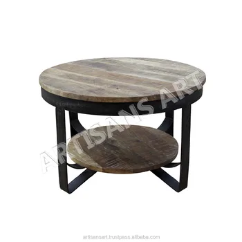 Vintage Recycle Mango Wood Round Coffee Table Industrial Double