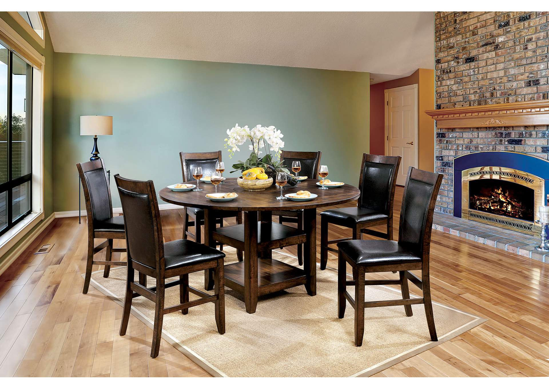 Meagan Ii Brown Cherry Round Counter Height Table W 4 Chairs
