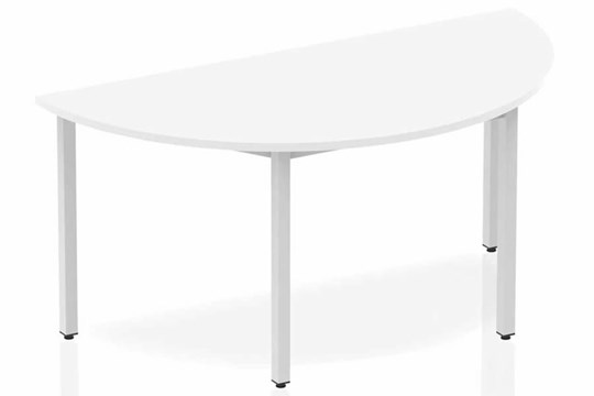 White Semi Circle Meeting Table 1600mm Wide Metal Frame Leg
