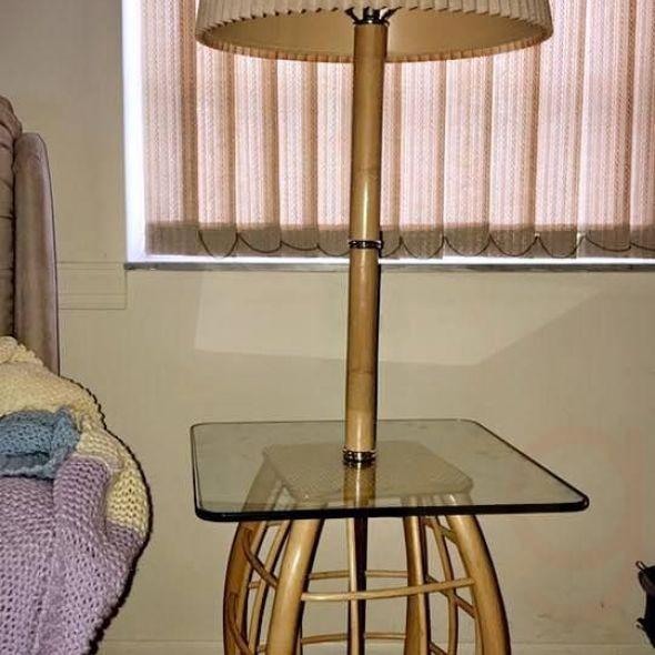 Mid Century Modern Floor Lamp With Magazine Rack And Side Chair