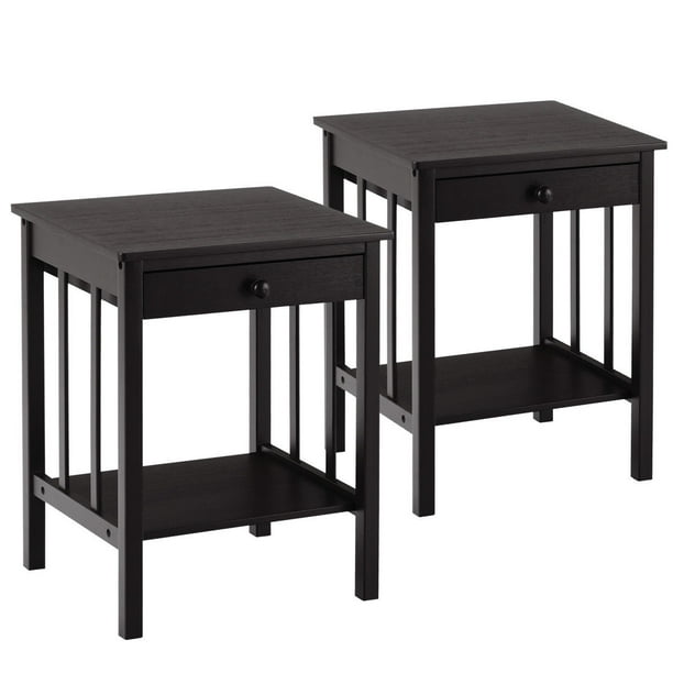 Costway Bamboo Nightstand End Table Drawer Storage Shelf Side
