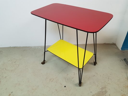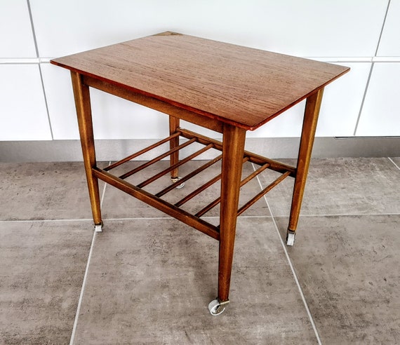 Danish Mid Century Trolley Side Table On Wheels With Brass Etsy
