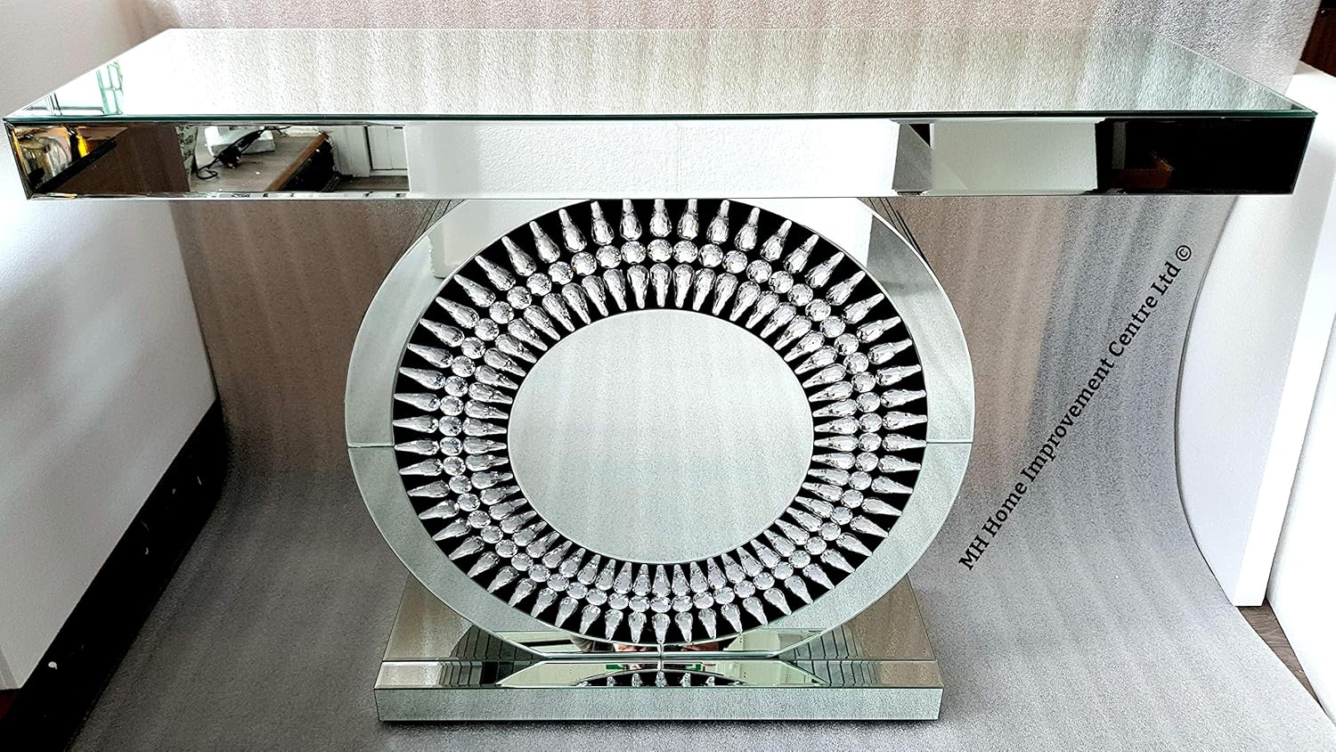 Mh Sparkly Crystal Silver Mirrored Console Table And Round Mirror