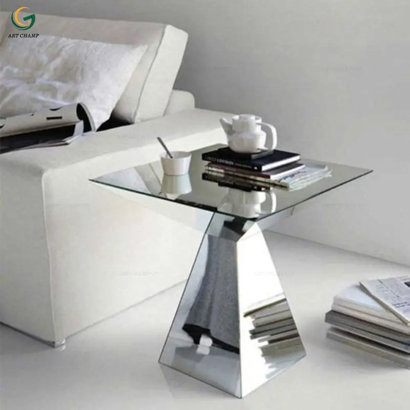 T Shaped Modern Design Wood Glass Mirrored Silver Side Coffee