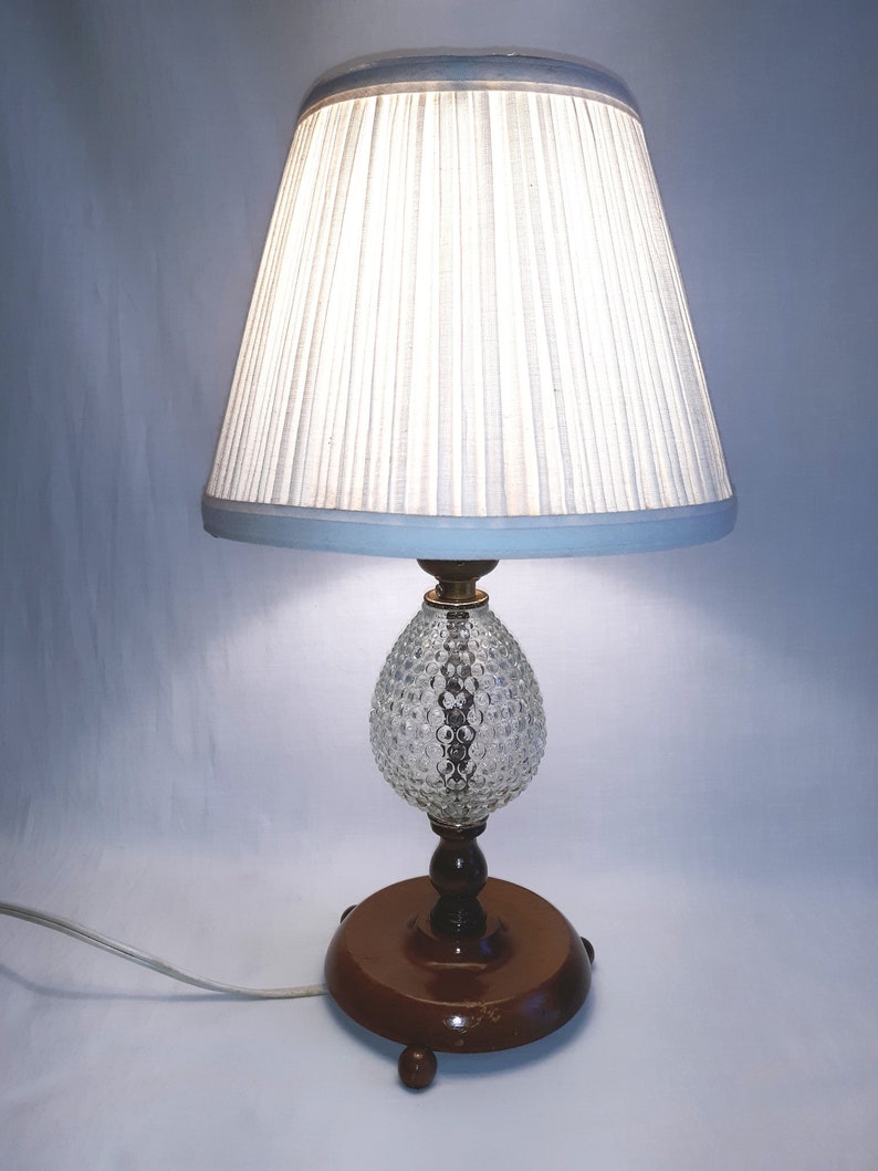 Antique Small Desk Table Lamp Wooden Clear Glass Hobnail Weber Etsy