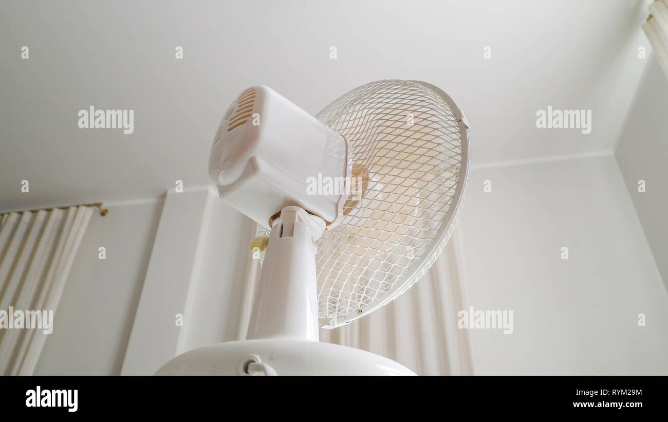 The Back Of The Small Fan On Top Of The Table Swaying Left To