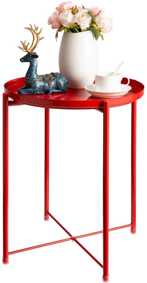 Ezzu Crafts Tray Metal End Table Sofa Table Small Round Side