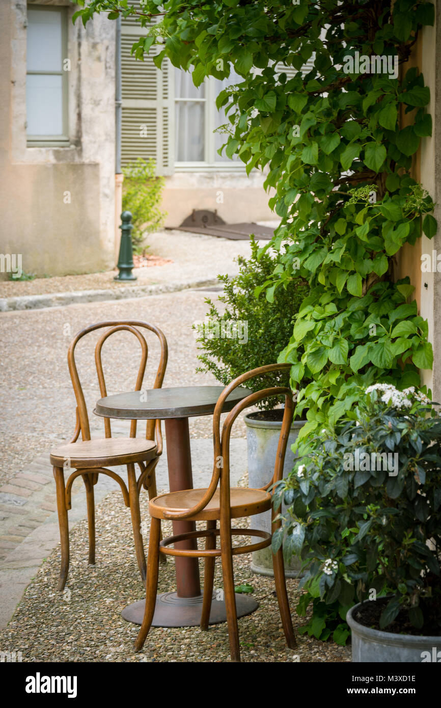 Small Round Table With Two Thonet Chairs In A French Village Stock