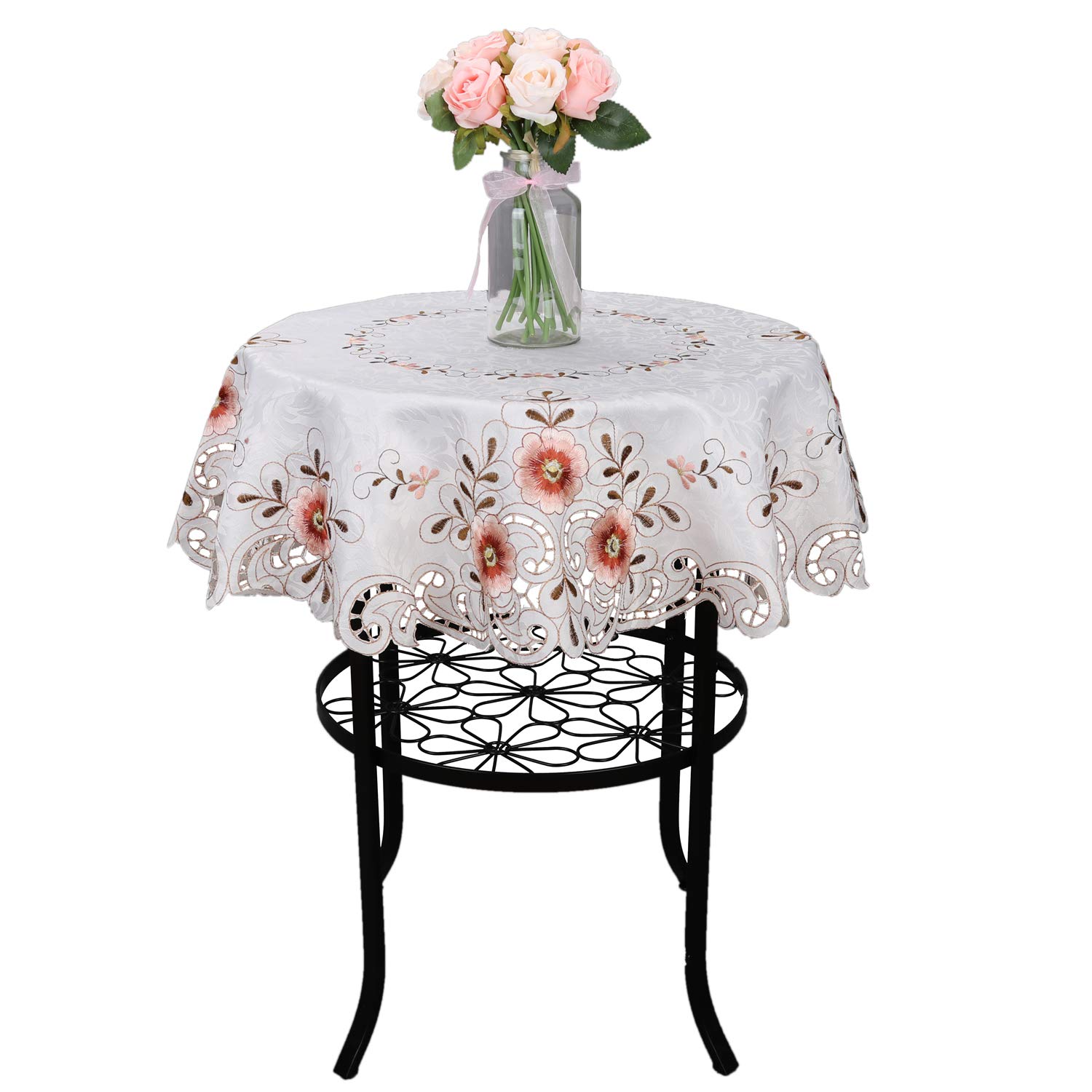 Floral Beige Cutwork Small Round Tablecloth Table Desk Top For