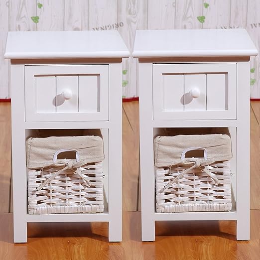 Amazon Com Set Of 2 White Storage Wood End Side Bedside Small