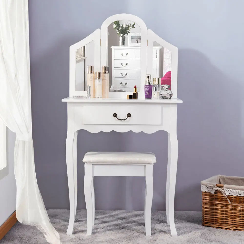 Charmaid Vanity Set With Mirror Stool Makeup Dressing Table