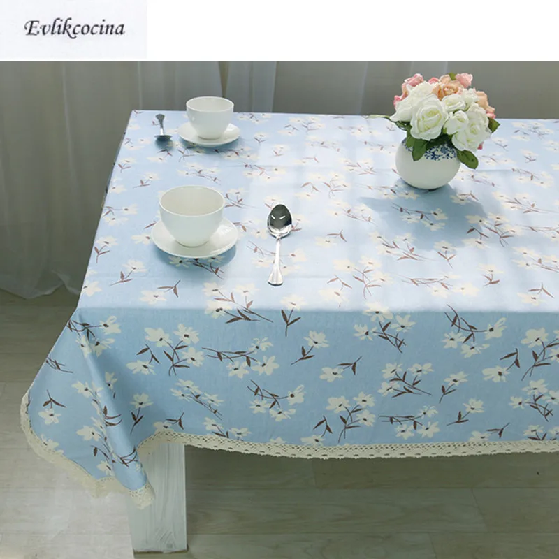 Free Shipping Small White Flowers Blue Tablecloth Cover Mantel De