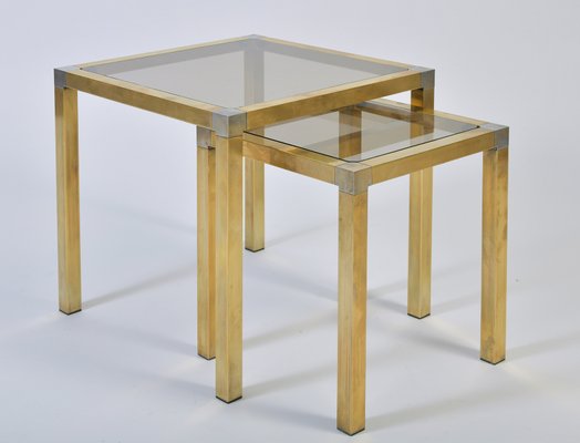 Brass Smoked Glass Nesting Tables 1950s For Sale At Pamono