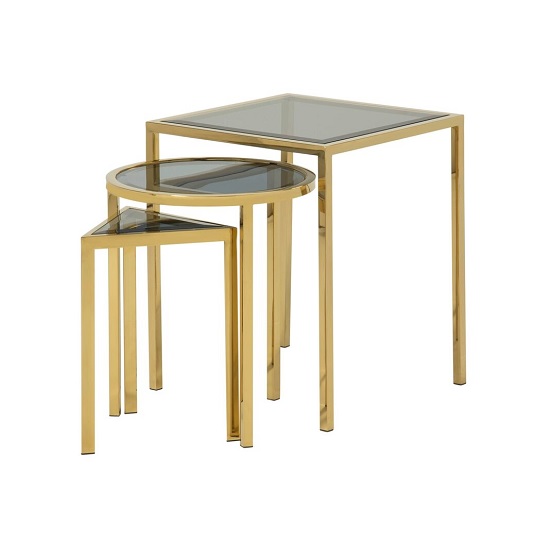 Pike Glass Nest Of 3 Tables In Smoked And Gold Plated Steel Base