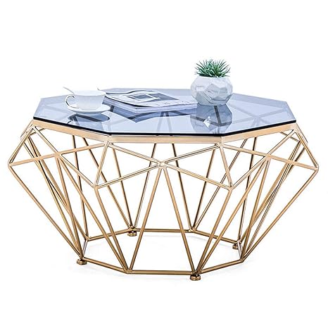 Dxjni Square Wrought Iron Coffee Table Transparent Tempered