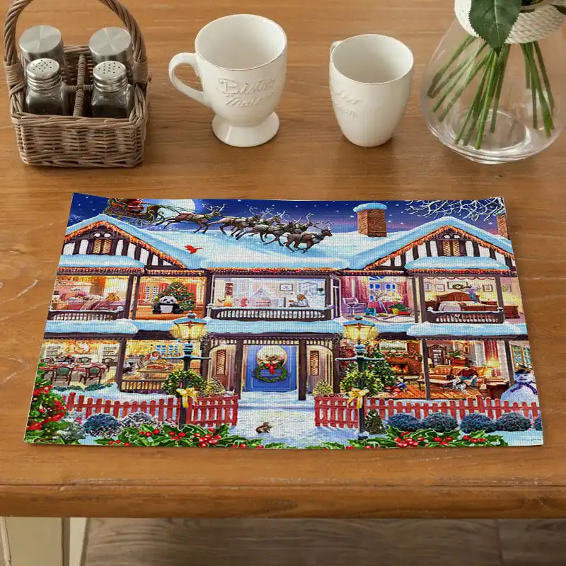 New Merry Christmas Placemat For Dining Table Bowl Cup Mat Drink