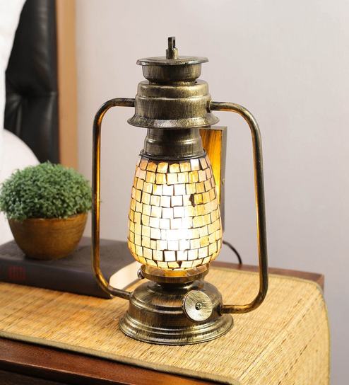 Buy Brown Glass Shade Table Lanterns With Gold Base By New Era
