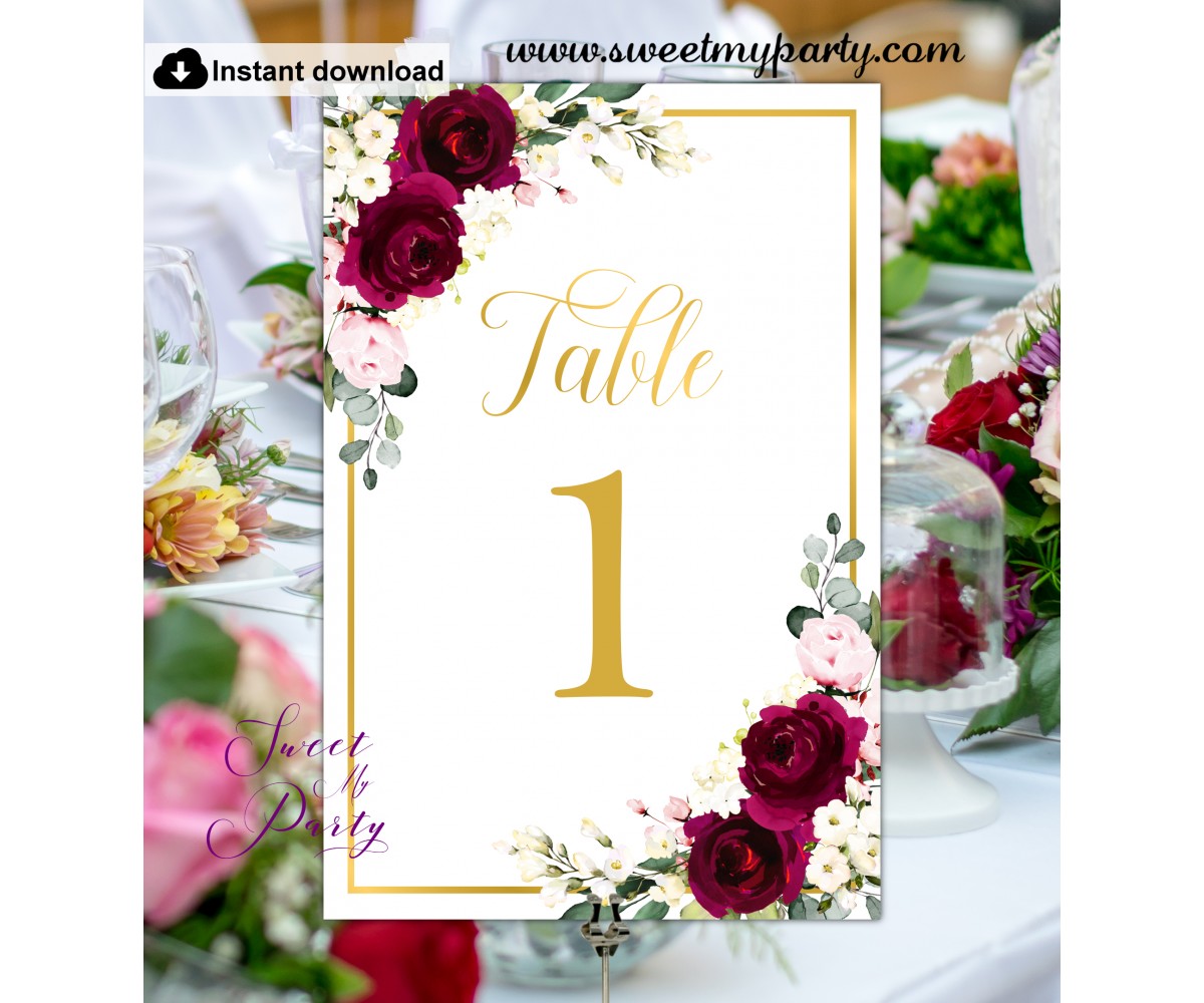 Burgundy Table Numbers Printable Burgundy Ivory Table Numbers