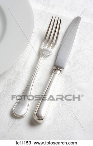 Elegant Table Setting With Silverware On White Cloth Stock Photo