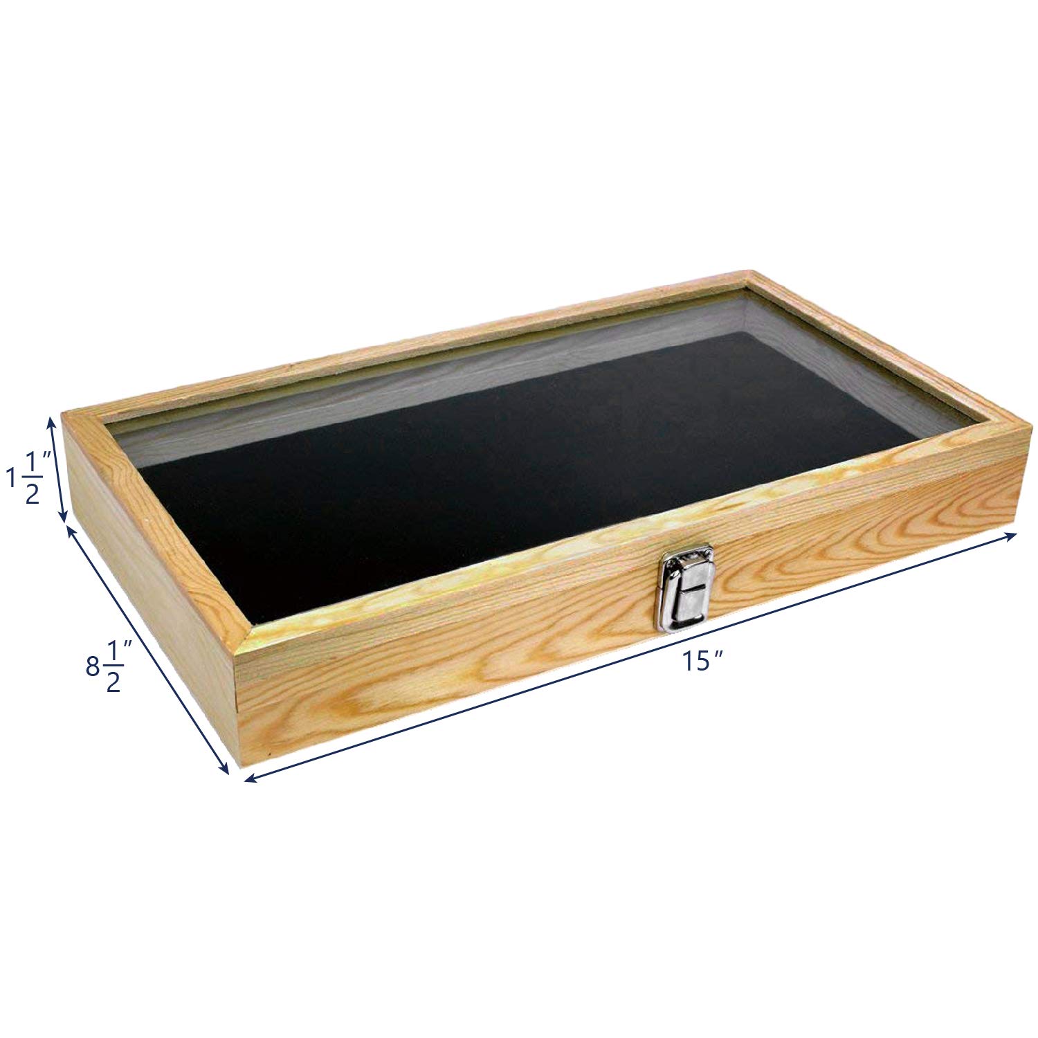 Wooden Display Case W Tempered Glass Top Lid For Jewelry Medals