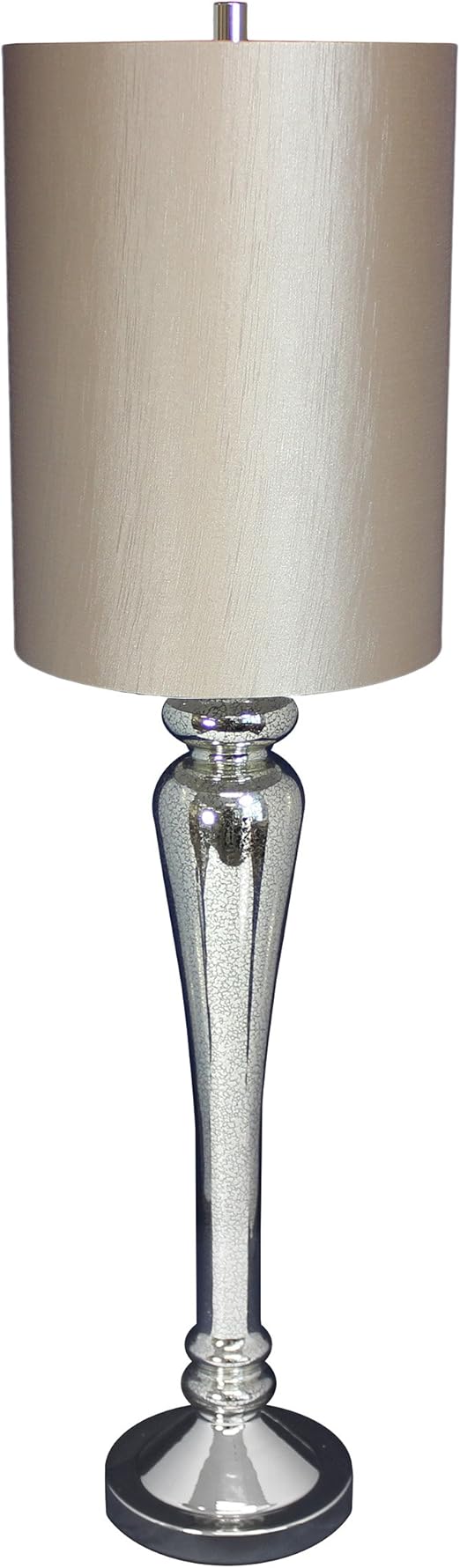 Antiqued Mercury Glass Table Lamp Aged Nickel Finish Linen Shade