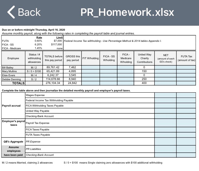 Back Pr Homework Xlsx Due On Or Before Midnight Chegg Com