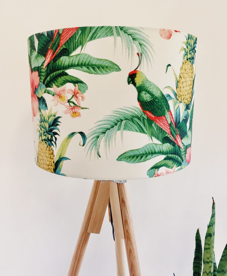 Parrot Lampshade With Tropical Leaves In White Made In Etsy