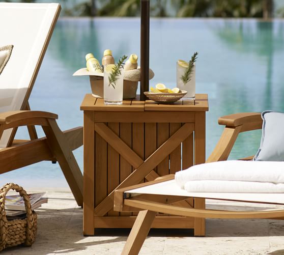Hampstead Teak Umbrella Stand Outdoor Side Table Honey Pottery