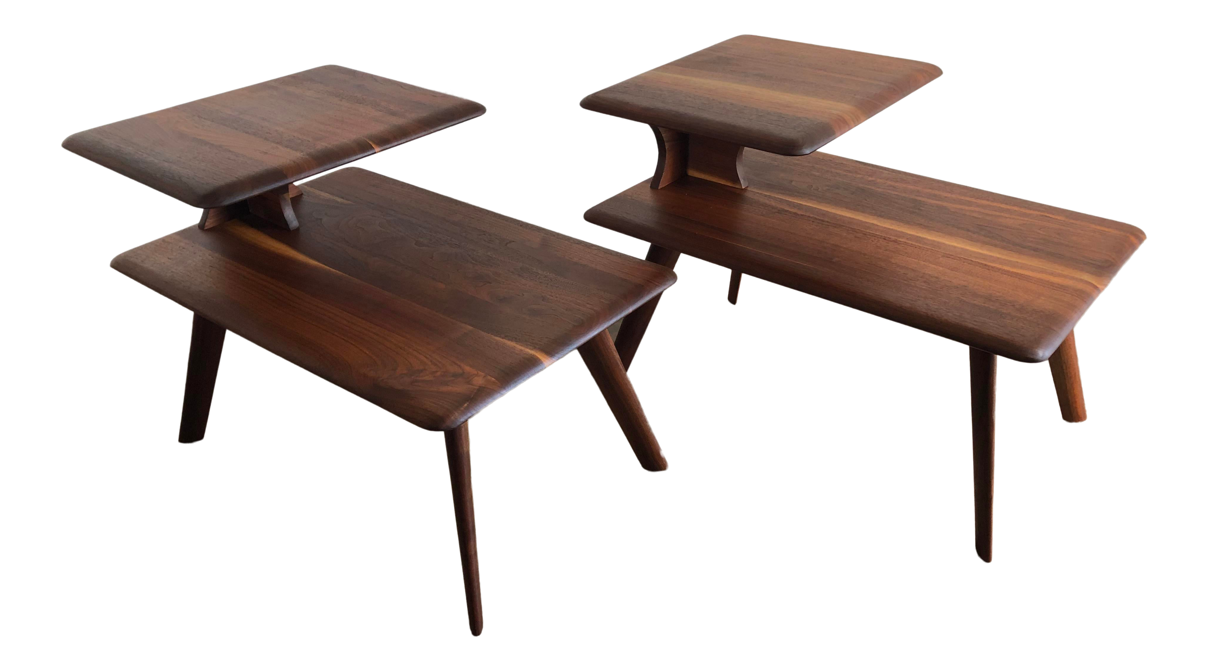Vintage Mid Century Danish Modern Two Tier End Tables By Carl