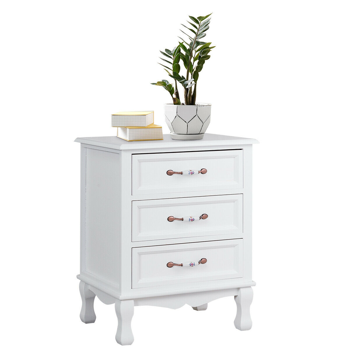White Bedside Table Modern Bedroom Accent Night Stand Chrome Side