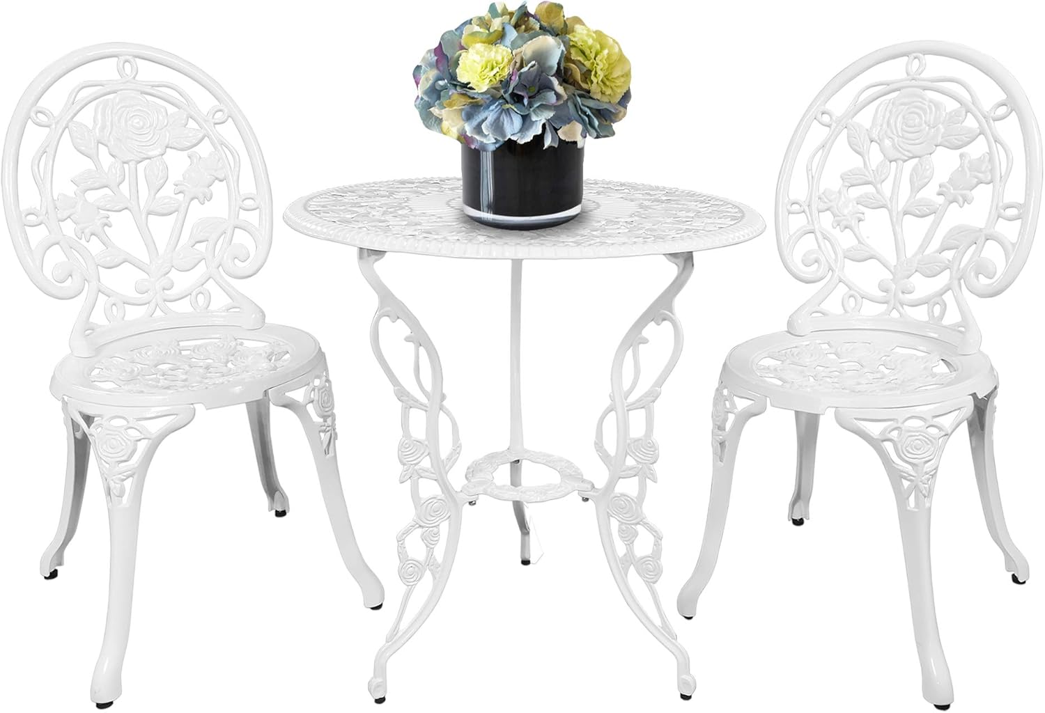 Amazon Com Homefun Bistro Table Set White Rose 3 Piece Outdoor