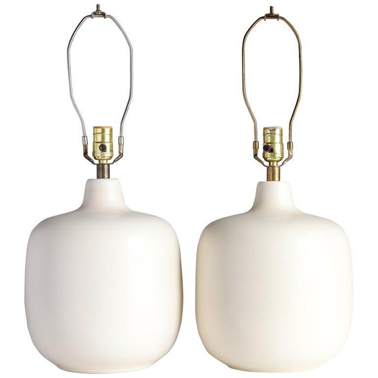 Pair Of Lotte Bostlund Large Off White Ceramic Table Lamps