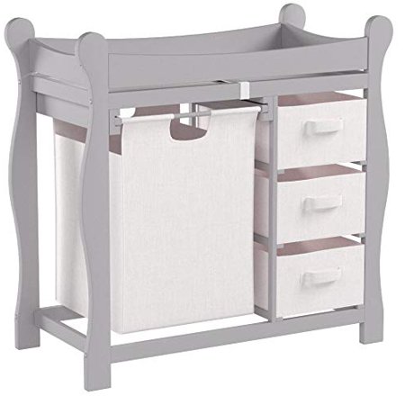 Sleigh Style Changing Table With Hamper 3 Baskets Gray Walmart