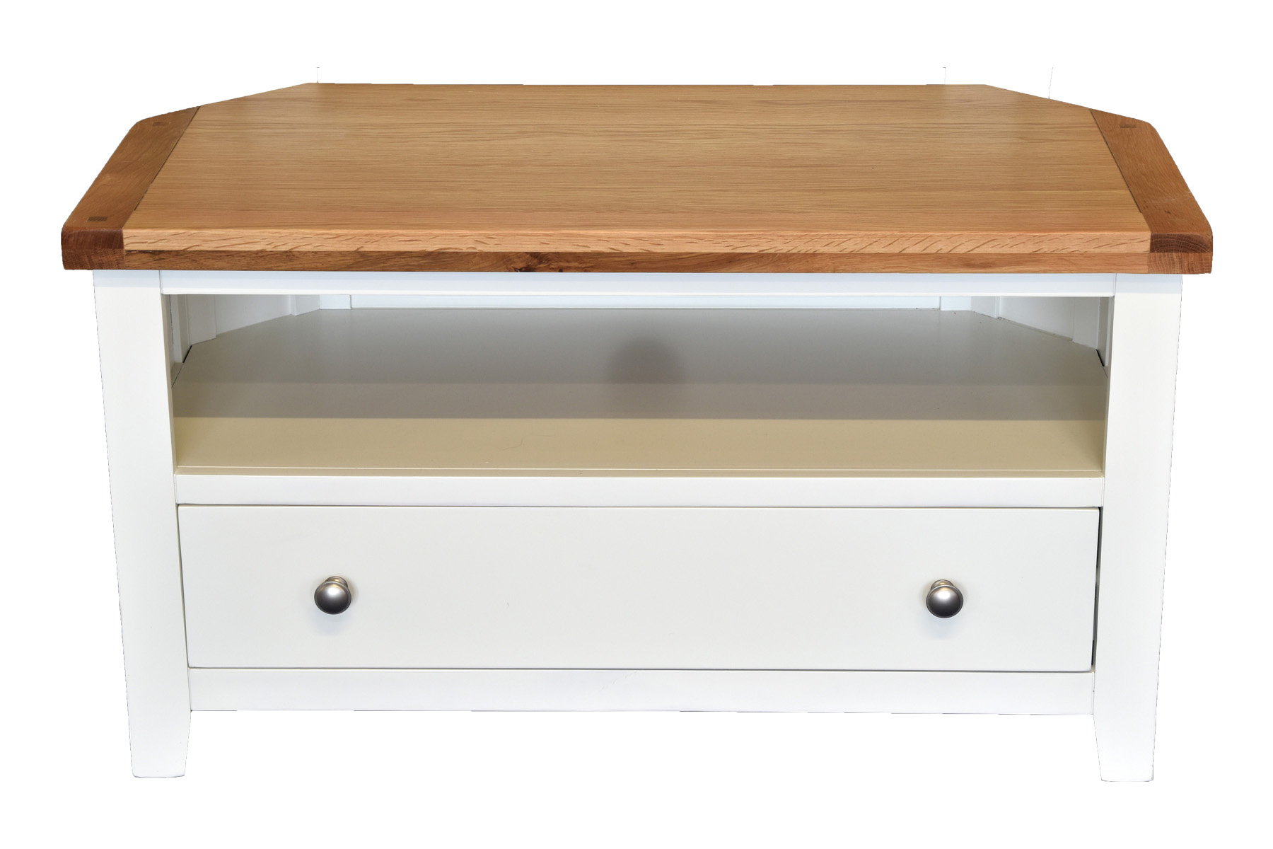 Harrogate White Tv Cabinet Solid Oak And Pine Corner Unit With Drawer