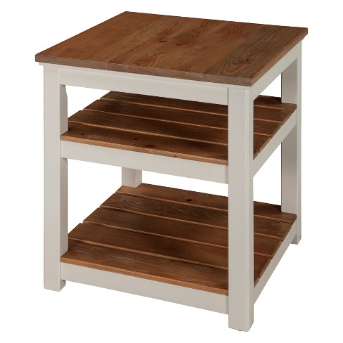 Savannah 2 Shelf End Table Ivory With Natural Wood Top Bolton