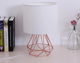 Angus Copper Geometric Table Lamp With White Shade Rose Gold