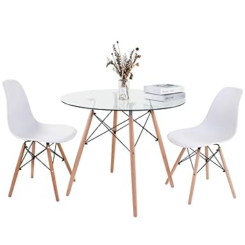 Joolihome Glass Round Dining Table And 2 Chair Eiffel Dining