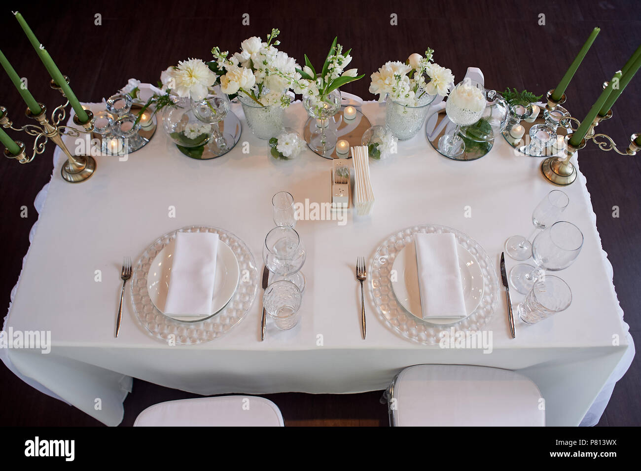 Wedding Table Setting Decorated With Fresh Flowers White Plates