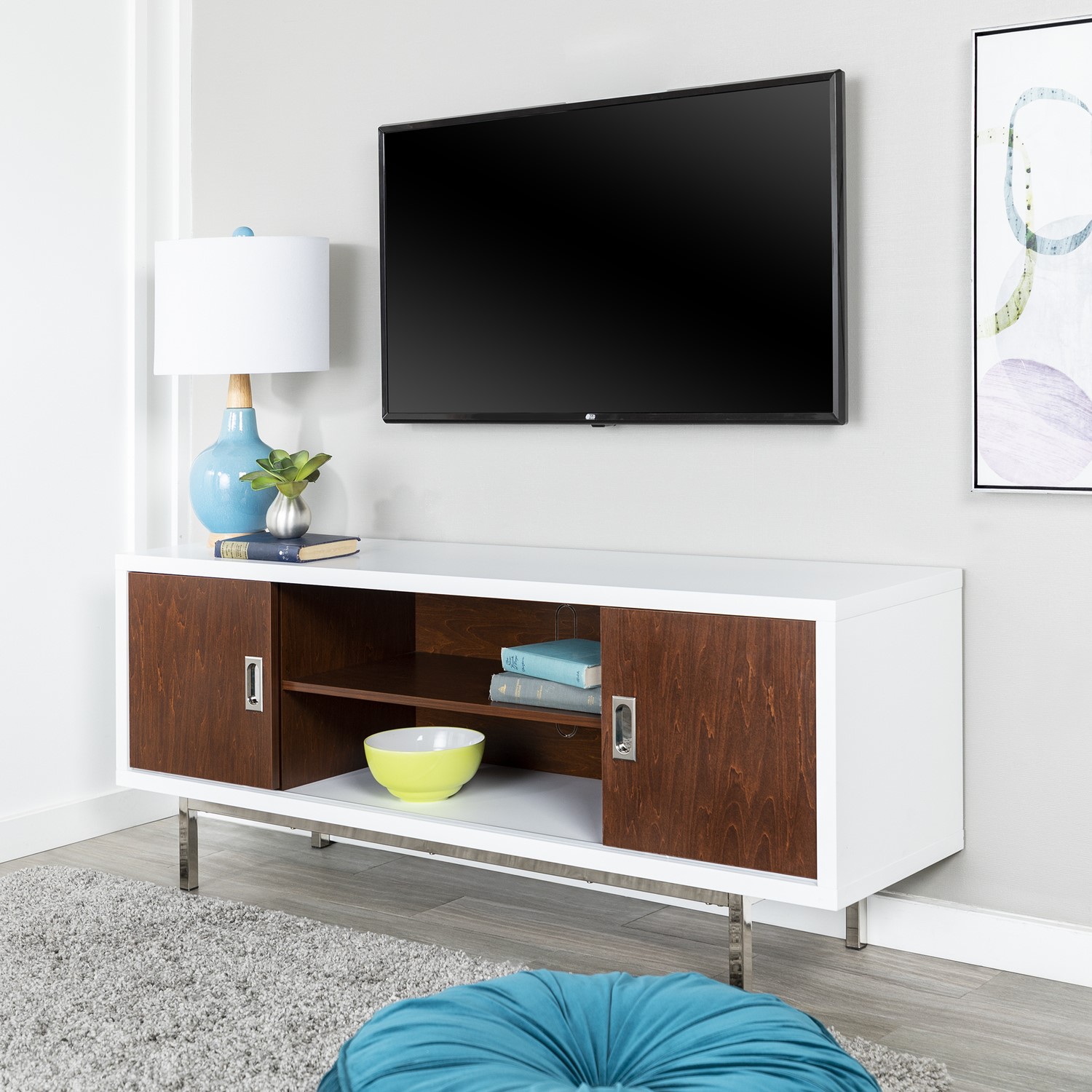 Dark Wood White Tv Unit With Sliding Doors Tvs Up To 60