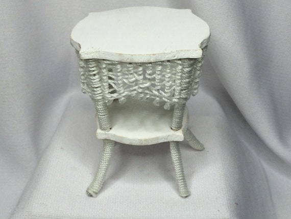 Dollhouse Miniature 1 Scale White Wicker Table By Peggy Etsy