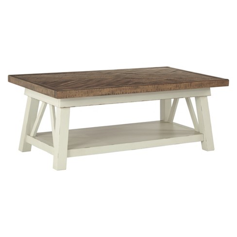 Stownbranner Rectangular Cocktail Table Brown White Signature