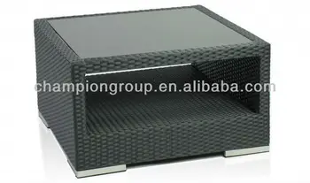 Rattan Wicker Garden Glass Coffee Table Anthracite Linja Gmbh