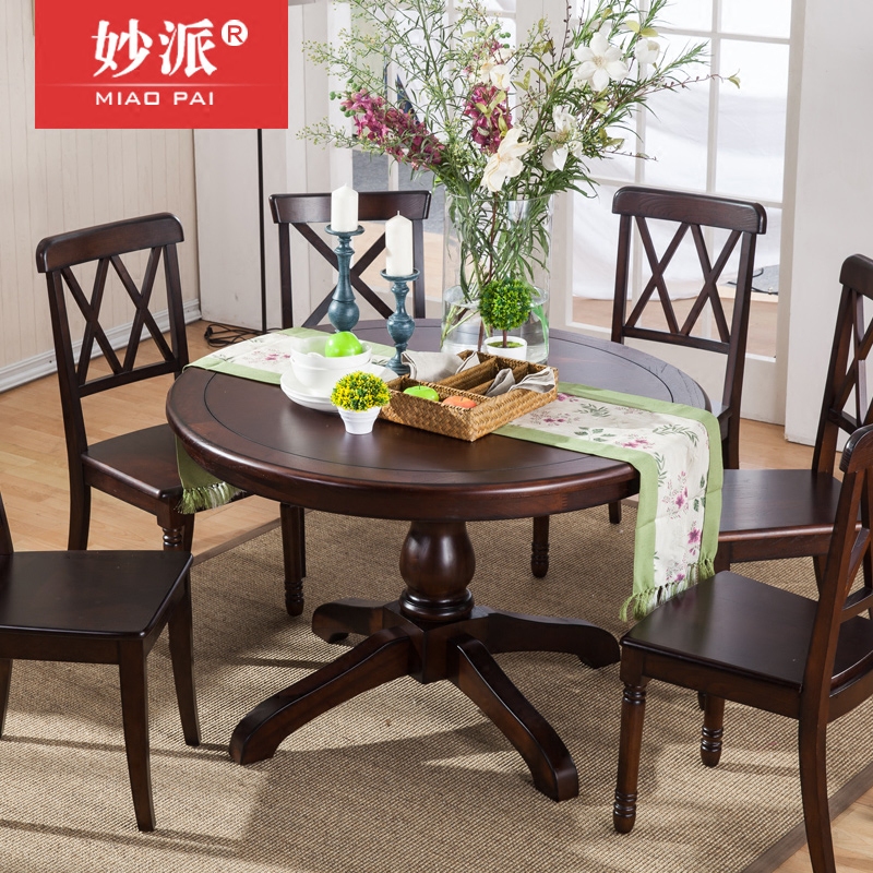 Buy American Country All Solid Wood Round Dining Table 4 People 6