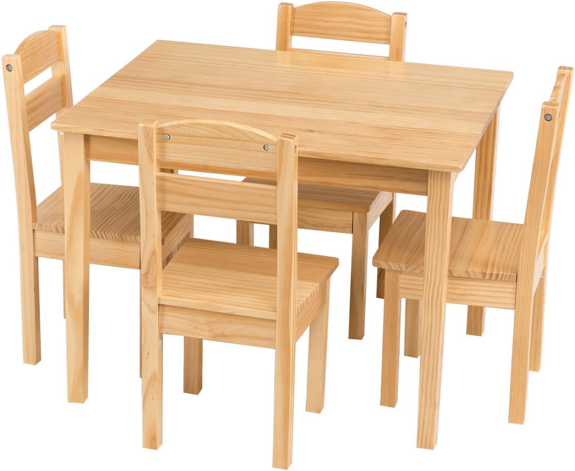 Amazon Com Costzon Kids Wooden Table And 4 Chair Set 5 Pieces